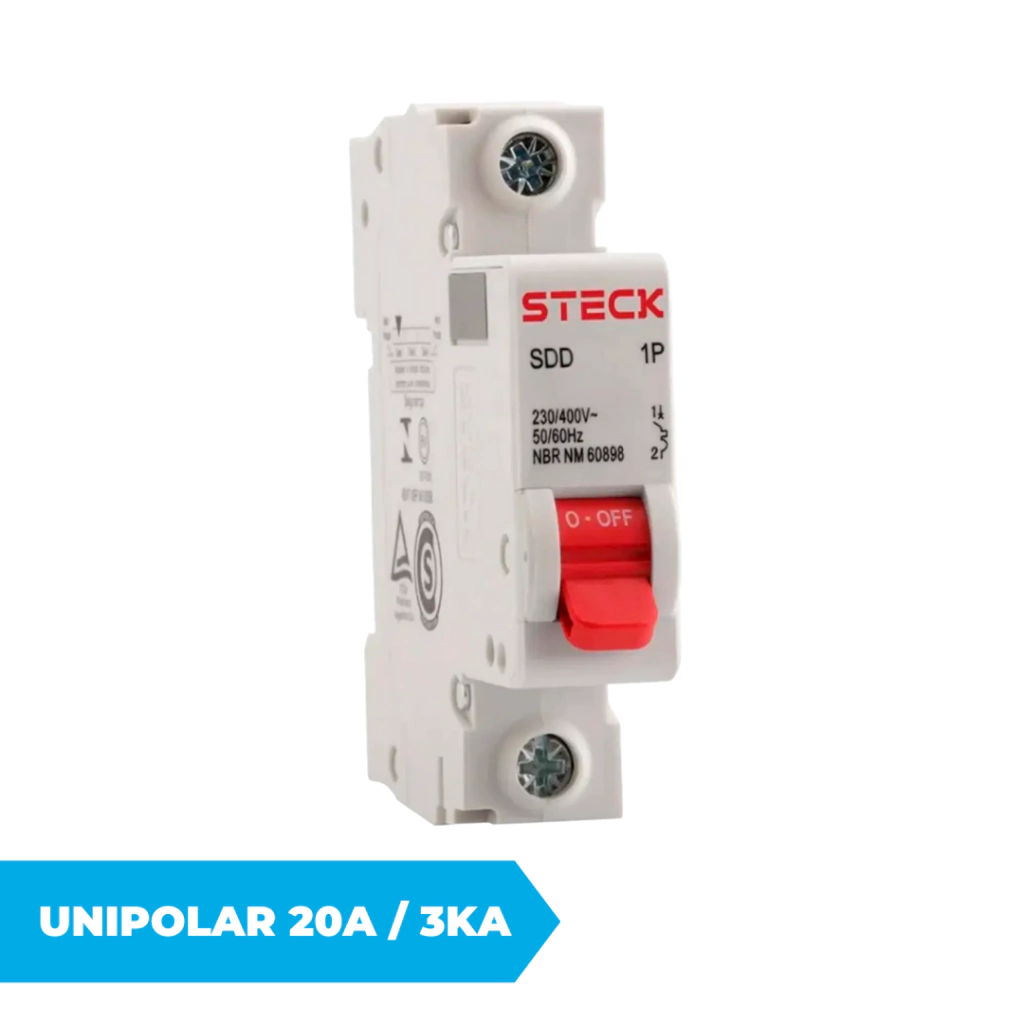 • INTERRUPTOR TERMOMAGNÉTICO STECK SDD61 20A UNIPOLAR CURVA C